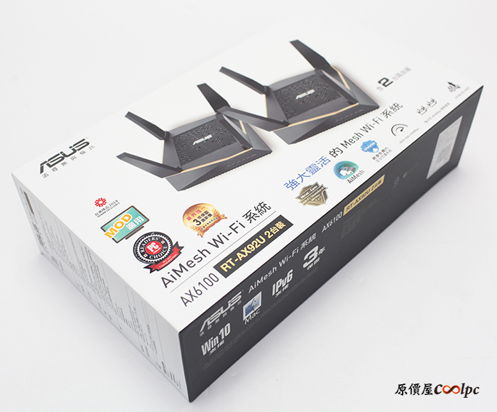 @2019/06/22 ,11:39Mesh技術的路由器必定會越來越多,不僅涵蓋範圍更廣,能同時應付的連線用戶也更多,加上大部分的透天厝用戶都有WiFi的需求!此時WiFi滿屋的任務也都寄託在Mesh身上啦!各家產品紛紛出籠,而ASUS路由器論功能性,在AP界算是數一數二的,先前推出的ROG Rapture GT-AX11000三頻機就是一個高端先驅阿!這回原價屋帶來ASUS RT-AX92U(2台裝),榮獲2018 COMPUTEX創新設計獎、第27屆台灣精品獎等榮譽,它更是個全球首款採用WiFi 6(802.11ax)網狀網路系統的組合!提供2.4GHz(400Mbps)、5GHz-1(867Mbps)、5GHz-2(4804Mbps)三頻,總速率可達6100Mbps,2支內部天線、4支外部天線,最主要就是以802.11ax當作路由器之間的傳輸橋梁,確保網路效能更貼近ISP業者的極速,當然它也支援MU-MIMO、OFDMA技術,多台裝置同時傳輸也易如反掌,再提供商用等級的終身AiProtection Pro網路安全防護,透過AiMesh技術最高可涵蓋150坪的範圍,額外功能還有AiCloud、Printer server、Download Master、AiDisK、Multiple SSIDs、家長網路管控等應用,除此之外也提供遊戲專用的Game Boost(GPN)來降低延遲唷!更詳細的功能就繼續往下看開箱吧!