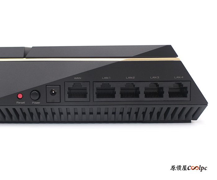 ASUS RT-AX92U光是身形就很有特色,除了使用圖騰散熱孔設計外,邊條還利用土豪金的配色來點綴!路由器提供2.4GHz(400Mbps)、5GHz-1(867Mbps)、5GHz-2(4804Mbps)三頻總速率可達6100Mbps,支援MU-MIMO、OFDMA同時上行/下行,解決多台裝置連線的延遲問題!而兩台Mesh的配置是走5GHz-2的極速通道,確保連線中的裝置都能享受到ISP業者提供的最高速度。