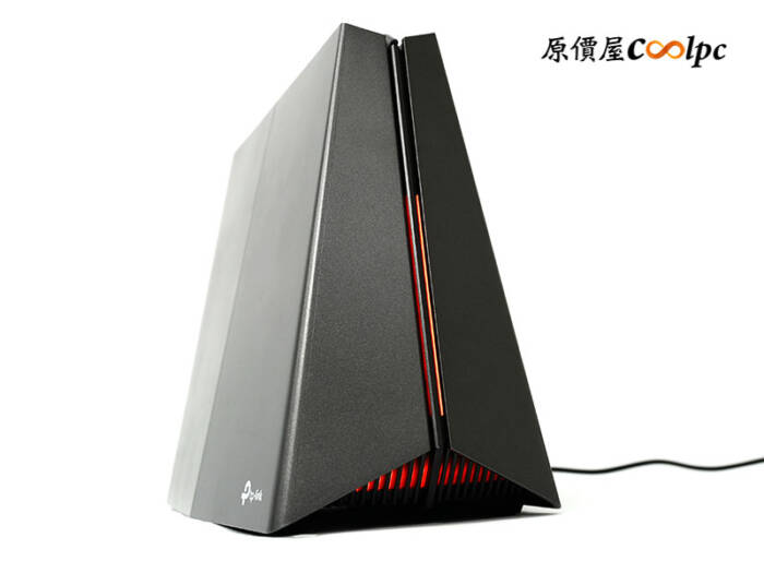 (點小圖放大)本以為 TP-Link Archer BE550 的造型就已經挺特別的了,想不到這次 TP-Link Archer GE550 更霸氣一些,其實小編第一個反應是,設計師靈感來源是不是黑武士面具?待會開機發紅光的時候會更有味道!機身尺寸大小為 237 × 129.5 × 193mm,從正面看是類似三角塔型樣貌,側面看又是梯形樣貌,底部有 4 塊防滑腳墊設計,穩如泰山!全機散熱由底部大面積進氣孔 + 頂端散熱口自然流排熱。