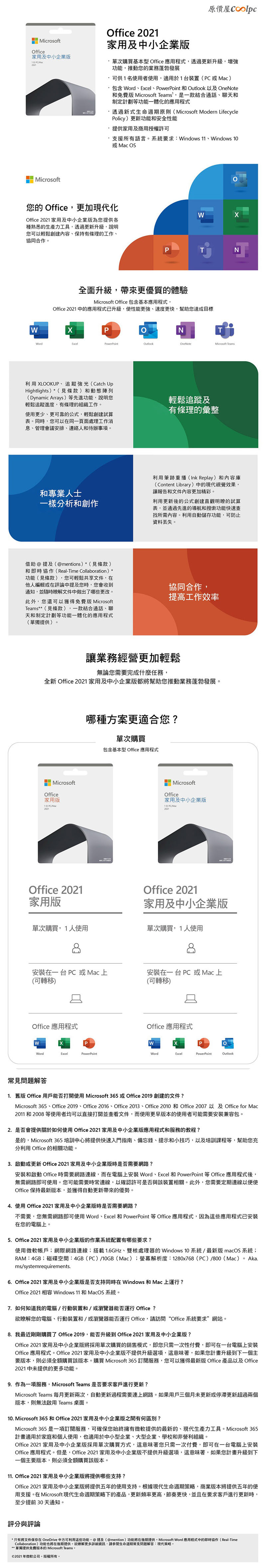 .Office 2021 家用及中小企業版 (家用版+Outlook), $8390 到蝦皮買