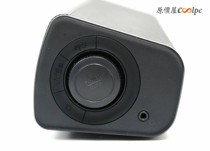 喇叭的右側則是主控中心,除了有多個按鍵和一個旋鈕外,這邊也提供了一個外接耳機用的 3.5mm 接孔。