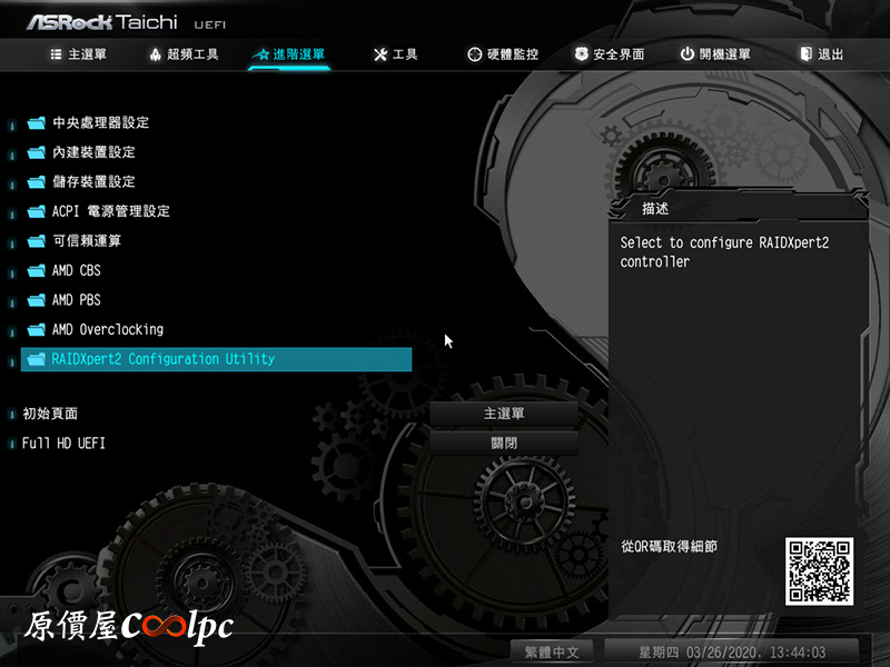 接著再進入BIOS的進階選單,可以發現多了RAIDXpert2 Configuration Utility。