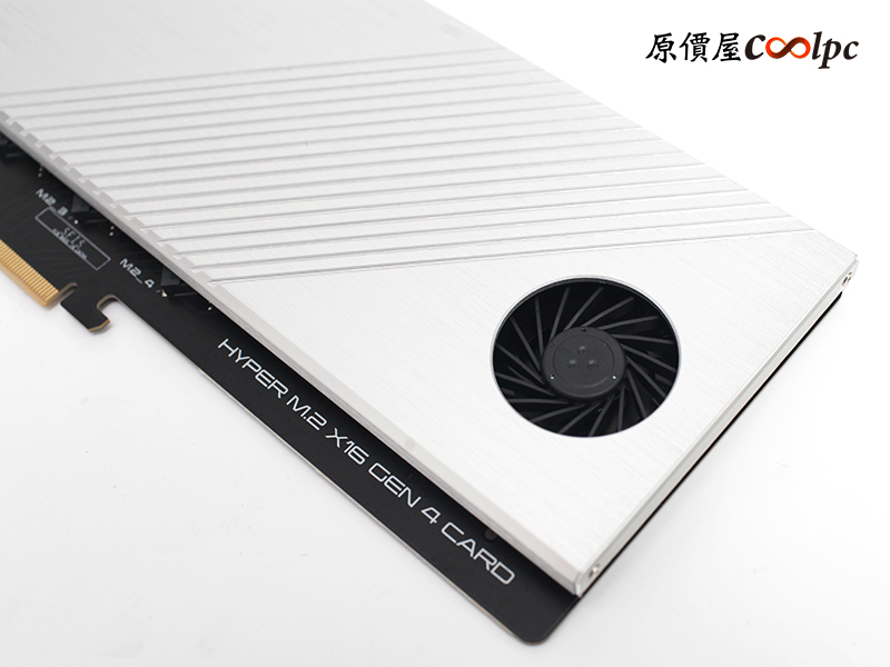 包裝使用全黑設計,正面就印上HYPER M.2 X16 GEN 4 CARD,顯然官方也不想多介紹甚麼,因為專業的都是已經懂了XD,這回Gen4版本除了性能上的晉升外,風扇位置也做了開孔設計,試圖增加氣流量。