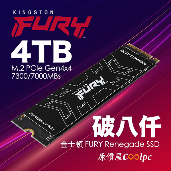 金士頓 FURY Renegade 4TB/Gen4 PCIe 4.0/讀:7300/寫:7000/TLC【五年保】$9550↘$7999 開箱