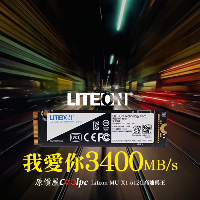 Liteon MU X1 512G/M.2 PCIe 2280/讀:3400M/寫:2000M/TLC/【五年保】$2199↘$1999