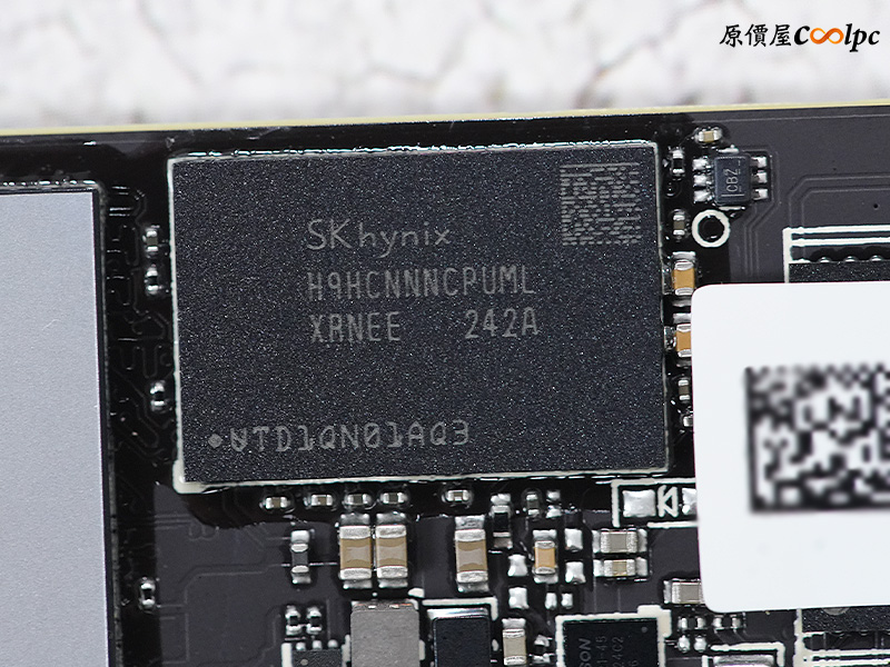 先來看一下用料,本體正面為控制器、DRAM快取、兩顆 1TB TLC NAND 顆粒,。