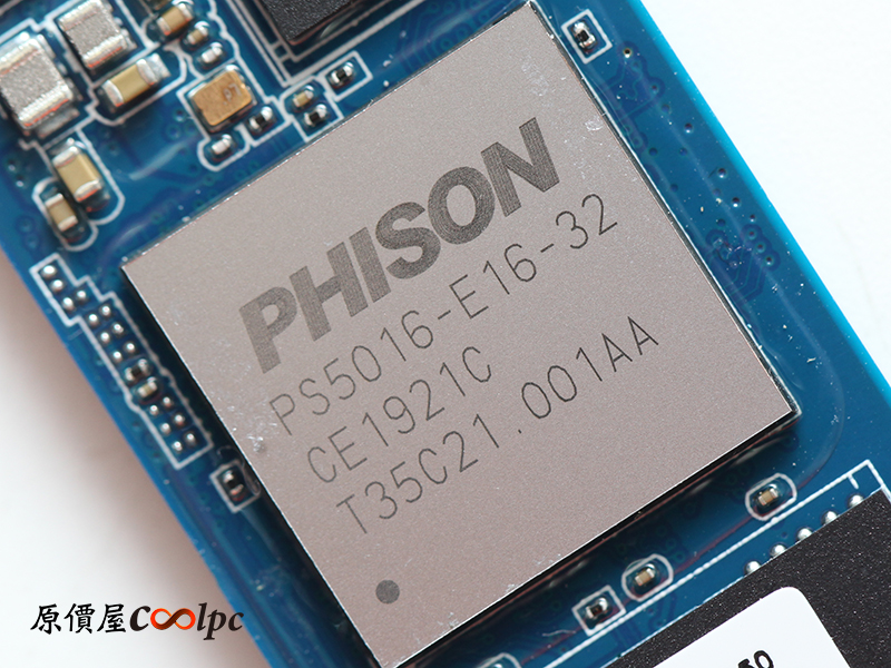 主控晶片使用PHISON PS5016-E16-32,支援PCIe Gen4x4、NVMe 1.3、3D NAND TLC,正反面共使用4顆TABHG65AWV NAND FLASH,記憶體部分使用2顆DDR4 8G SK hynix H5AN8G8NAFR、78ball FBGA,電源管理晶片使用PHISON PS6106-22。
