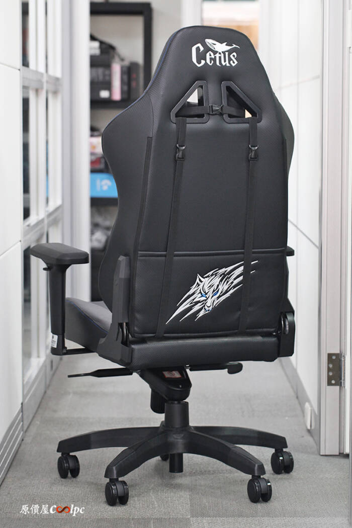 當然椅背的後面也要有些視覺點綴才帥嘛~所以在後方也有”Cetus”以及鯨魚的精美刺繡。