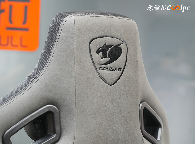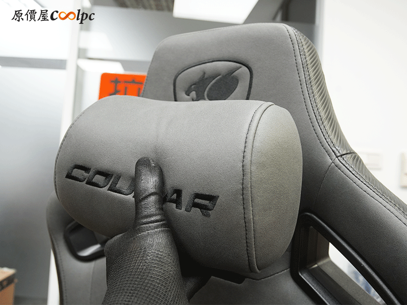 椅子有獨立的記憶棉頭枕,上面縫上COUGAR字樣,接近頭部的位置還繡上COUGAR LOGO,一眼就能輕鬆辨識出是誰家的商品,且在後方也有一個相同的LOGO。