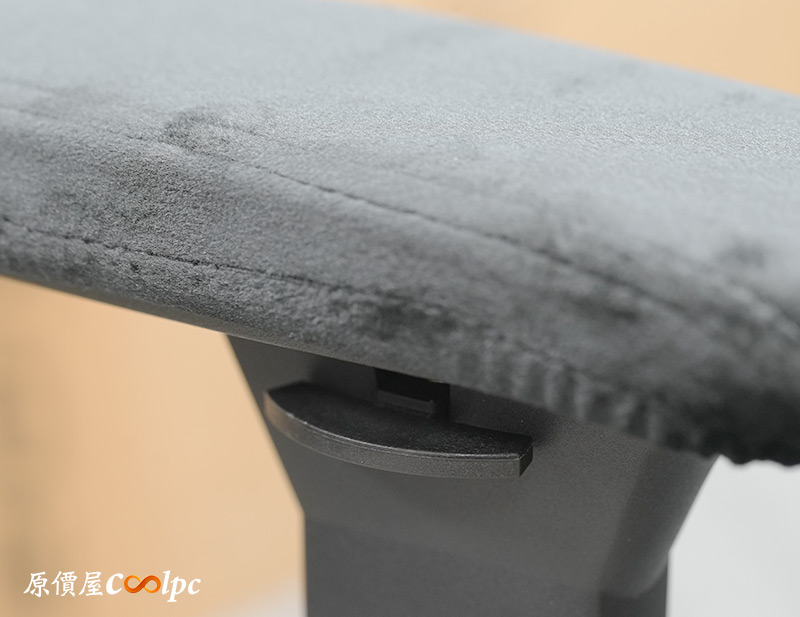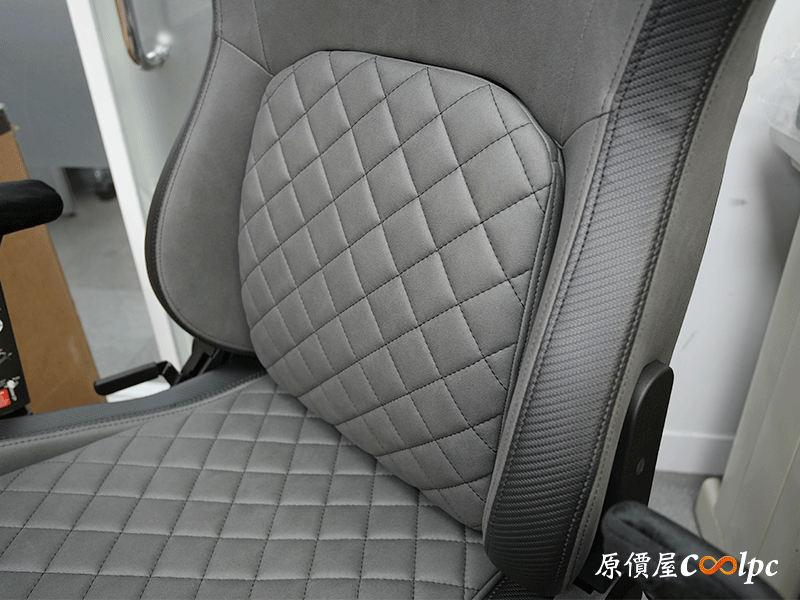 椅背上藏著獨立的腰靠,也就是菱格紋的部分,裡面搭載COUGAR獨特的PushBack支撐系統,支撐位置基本上是無段位調整。這也是小編我最滿意DEFENSOR S JET GRAY F的地方,因為撐下去真的不得了,直接把你的腰頂起來,壓力都跟著被釋放開了。