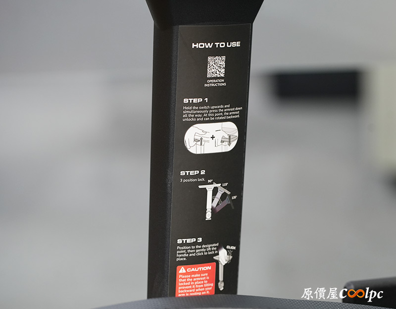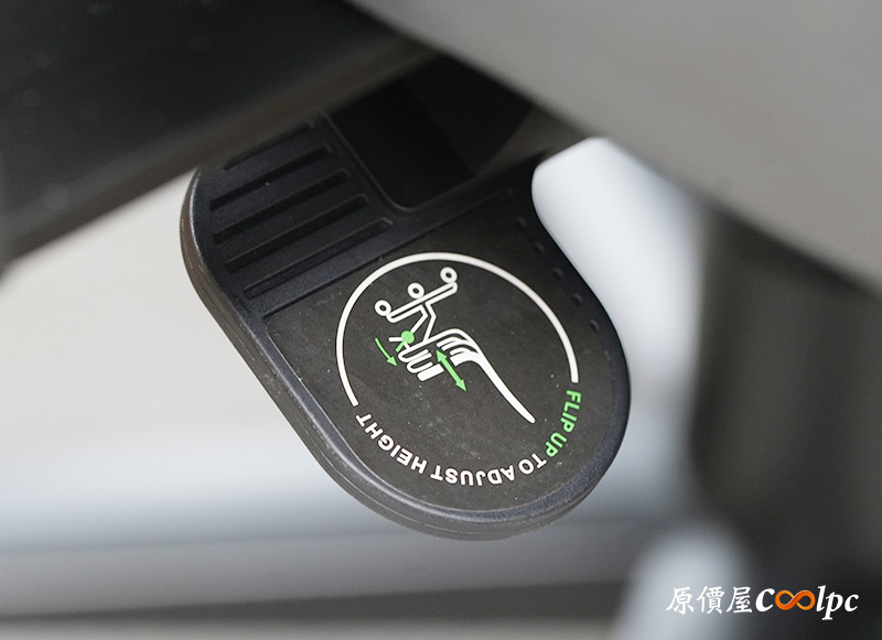 座椅還能向後搖擺,用不到時可以透過底盤的控制桿鎖定,控制桿上會有圖示與功能描述喔。