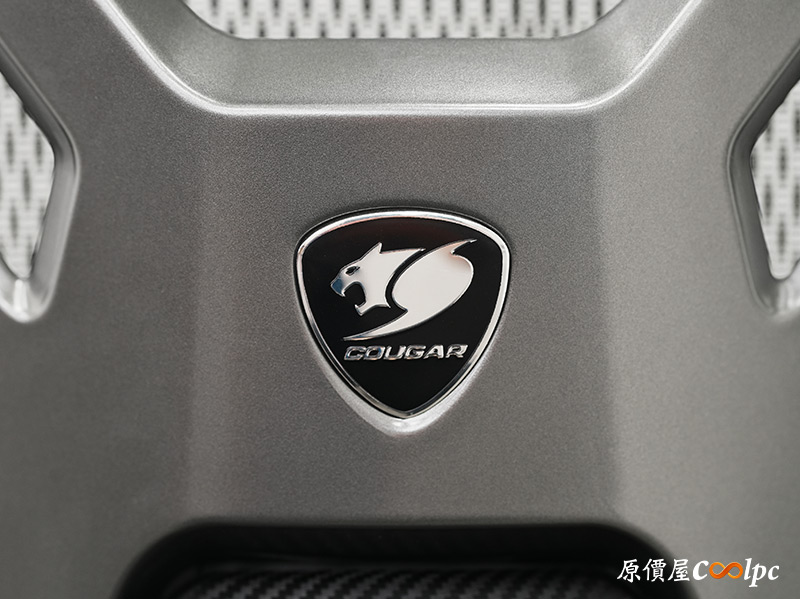 背面這個X造型不僅強化支撐性,也讓椅子顏值大大提升,小編我是覺得挺帥的,不知道大家怎麼想呢? 同時上面還有一個銀色亮面的COUGAR LOGO,下背部支撐更是碳纖維風格,毫無疑問就是好看!