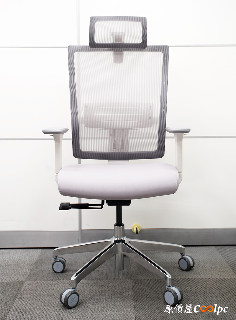 椅背形狀也是較符合人體工學的曲線,大部分面積都是透氣網布防止悶熱,後方再輔以腰靠做獨立支撐。