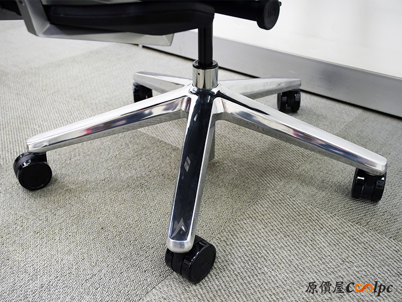 最底部則是CLASS 4氣壓棒,支撐整張椅子,坐墊升降都是靠它,還有質感超高的銀色金屬五星椅腳,滾輪是65mm靜音PU輪,滑起來都順暢不費力。