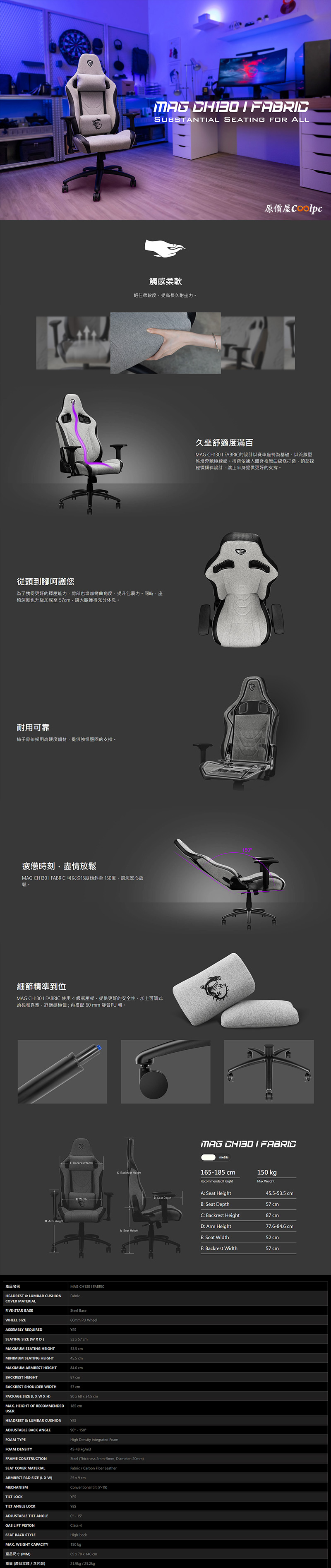 >>去原價屋蝦皮商城購買(MAG CH130I REPELTEK FABRIC、MAG CH130I FABRIC、MAG CH120I)