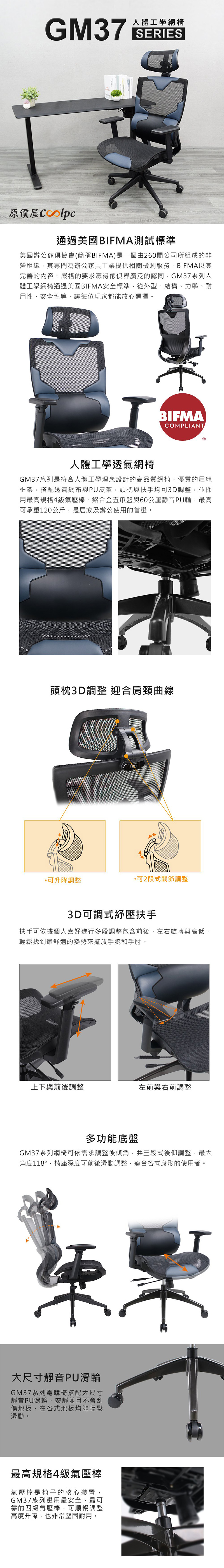 亞碩(Power Master) GM37-S 人體工學網椅(藍)(標準板) $8990↘$6180
