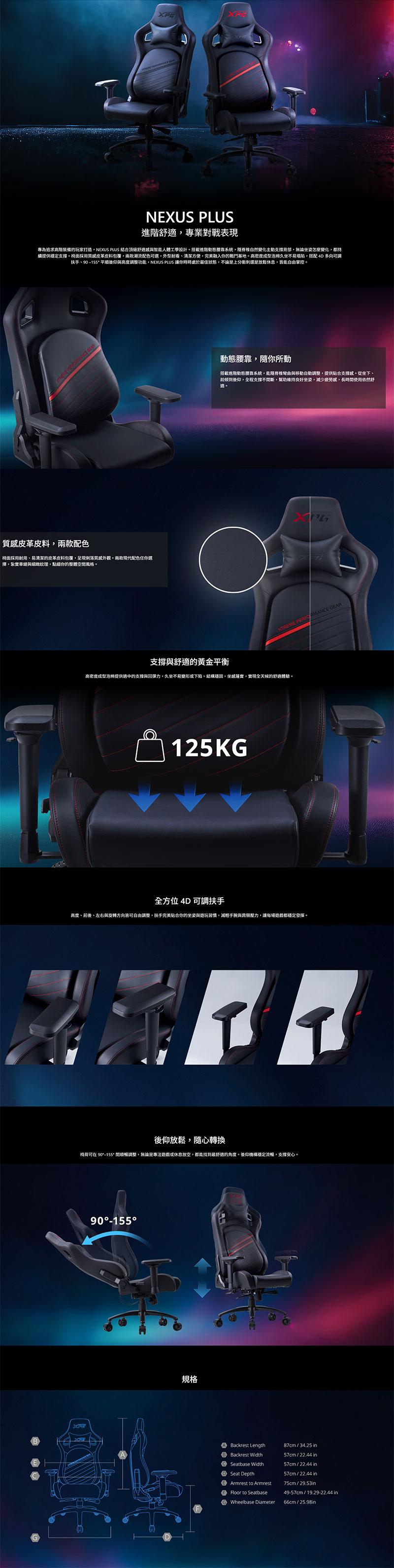 身為一位專業的電競玩家,這次就來看看 XPG 出手吧!全新登場的 NEXUS / NEXUS PLUS 人體工學電競椅正式宣告「舒適」也是一種強戰力!專為長時間戰鬥的玩家打造,人體工學設計、4D扶手(NEXUS 為 2D 扶手)、多段式後仰結構以及高密度泡棉坐墊填充,更配置金屬五爪底腳和高承重氣壓棒
