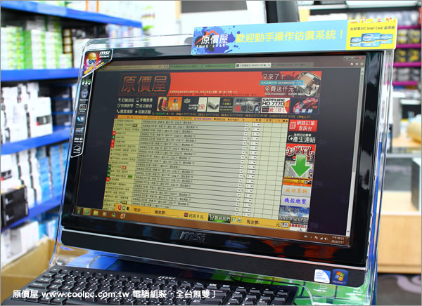 相信新竹的好朋友們對原價屋線上估價系統不陌生吧!現在它也正式出現在新竹商圈裡(難道有非正式出現過?!)。這次用的還是一體成型的MSI AIO PC,真是撒下重金呀!老話一句,各位來到原價屋門市,如果門市同事無暇招待時,還請你自行動手估價選擇,再等待我們的同事前來為您服務唷!