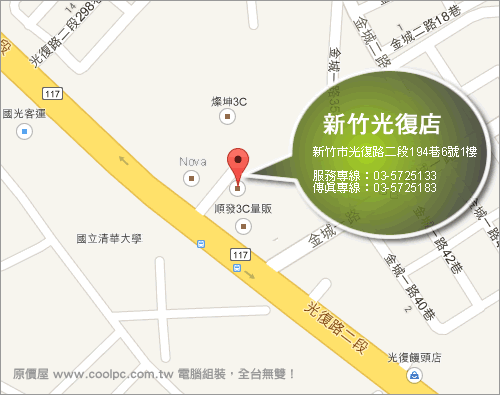 來看看地理位置,原價屋新竹光復店位於3C集中地,從地圖來看,有種列強環伺、腹背受敵的感覺。而事實上在試賣期間就已經領教過了,不過這對原價屋來說早已司空見慣了,我們常說原價屋是來做生意,服務人群的,做好自己便是了!