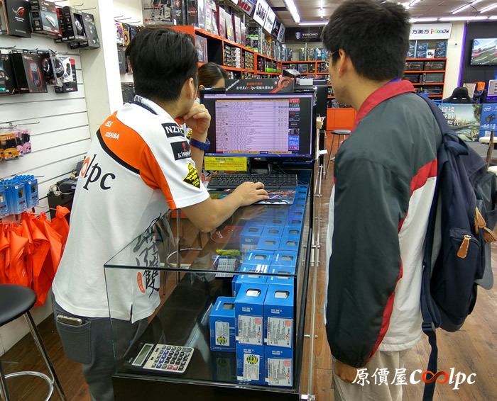歡迎動手操作原價屋Coolpc電腦估價系統,這應該是原價屋來到現場已經很習慣的動作了,你可以直接在櫃枱上看的到電腦的地方自己操作估價系統選擇所需商品,我們現場服務人員會與你討論組裝搭配的問題。前面說過了,如果現場服務人員手頭上皆有客戶時,還請自行操作並稍做等待唷!