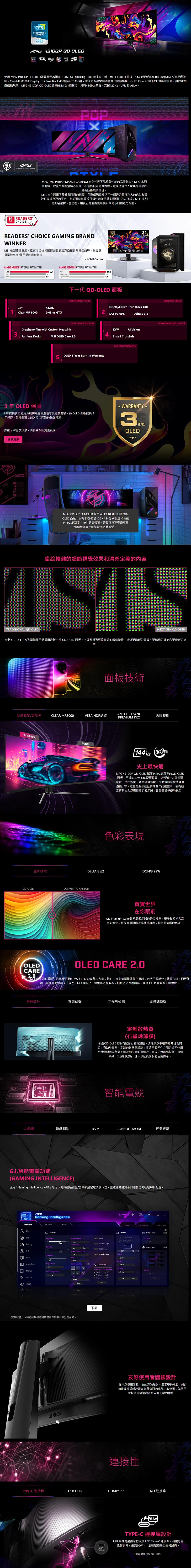 搶購商品:MSI MPG 491CQP QD-OLED 電競顯示器