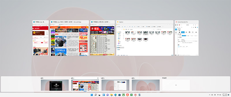 視窗群組Snap Groups與Desktops桌面是個非常好用的設計,當你將滑鼠移到工作列上的「Desktops圖示」上即會浮現,你可以新增數個虛擬桌面,並將不同的應用程式放置不同的桌面上,形成一個工作群組。