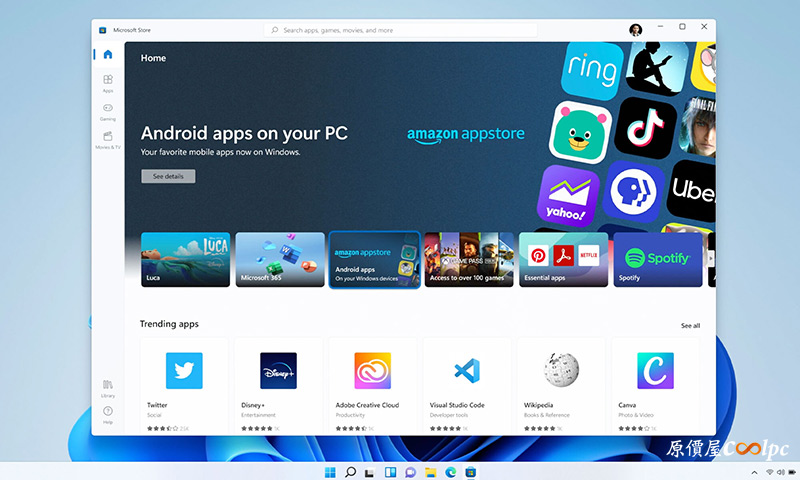 支援原生Android app是Windows 11的一個大驚喜!特別是讓平板電腦應用更順手,擴大整個Windows平台的生態圈。它採用了Intel Bridge技術和Amazon Appstore來達成,不過如果要運行Android app,系統建議需要至少8GB RAM,最好是16GB以上,所以你買電腦時記憶體記得加大點嘿!Android app運行技術預計要在2022年中下期才會開放。