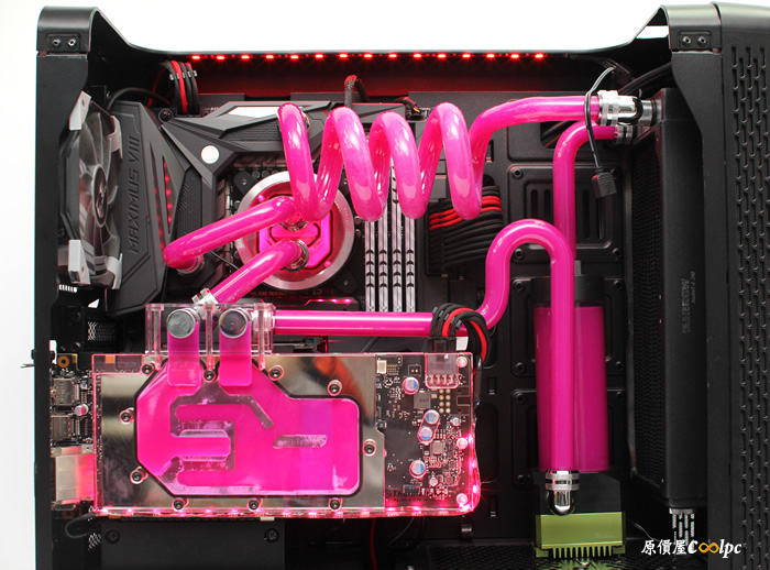 原價屋職人手作最新設計《旋轉粉紅豹》水冷套裝機登場啦!算一算這個系列也已經誕生近十位獨具一格與眾不同的水冷玩家,也因為每一款都有獨特不撞衫的造型設計,所以不會有早買早享受..只會有錯過沒搶到然後感到藍瘦香菇XD..所以只要有看到你的菜!就要把握機會下單啊!今天帶來這台粉紅豹可厲害了,這應該算是原價屋職人手作系列第一款採用"花式繞管"設計的產品,除了視覺效果滿分之外,裡面搭載的硬體配備也皆是旗艦等級,像是主機板就選用華碩ROG M8F、搭配i7-7700k和GeForce GTX 1080 創始版以及Tt 80Plus 金牌認證650瓦的電源,所以說無論你是要玩遊戲、超頻還是拿出來現都好,《旋轉粉紅豹》絕對能讓你感到十分滿意!