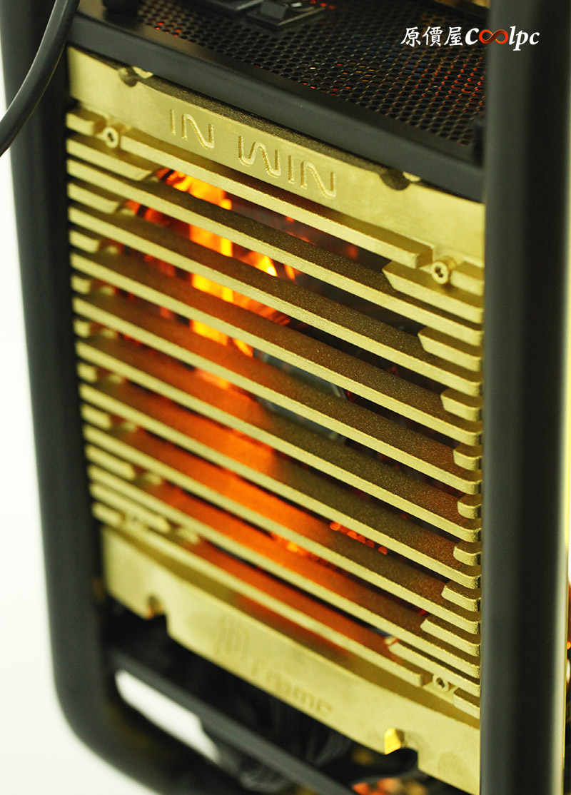 機殼採用迎廣(IN WIN)的30週年「D-FRAME 2.0透空式限量機殼」,機殼以全透空式的架構為主,兩側也以燻黑玻璃來搭配,這次職人也特別挑選了黑/鉑金配色,來增強「魔幻金身」的主題性!