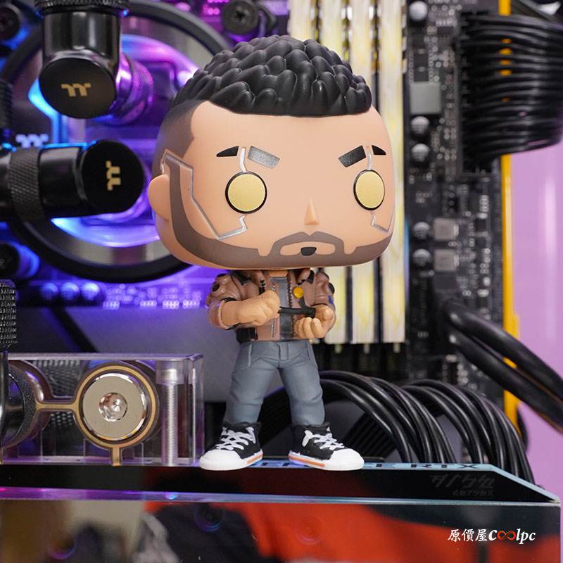 顯示卡上方還有電馭叛客2077 Q版模型,主角V和強尼銀手好基友的組合,陪你一起闖蕩都會夜城啦!