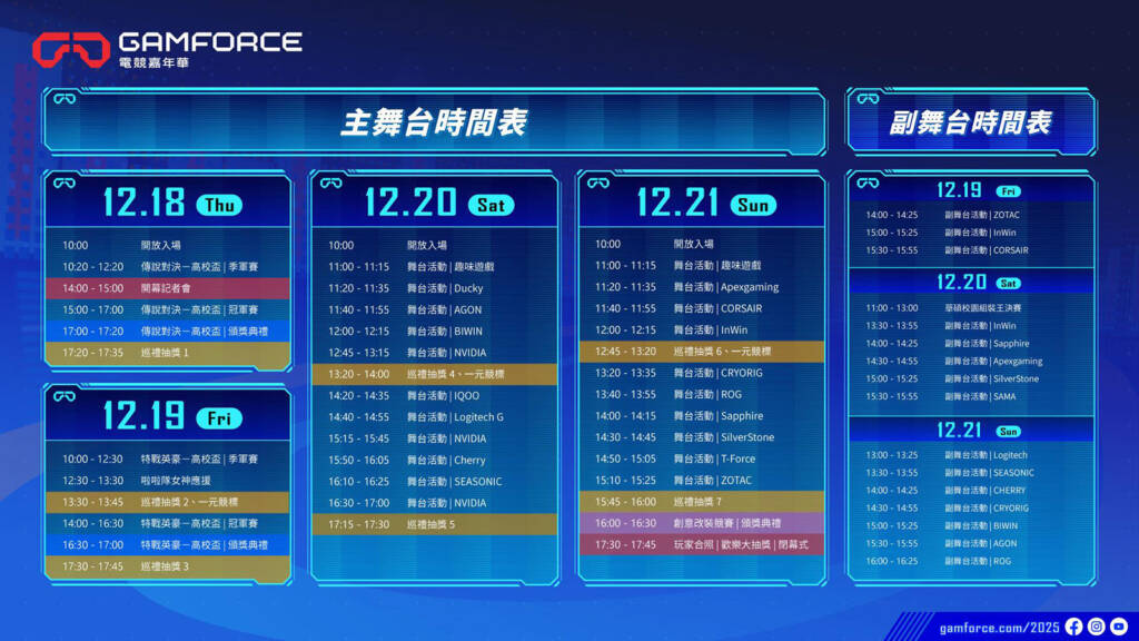 ‧闖關活動期間: 配合 GamForce 開放時間2025 年 12 月 18 日(四)- 2025 年 12 月 21 日(日)10:00 ~ 16:00